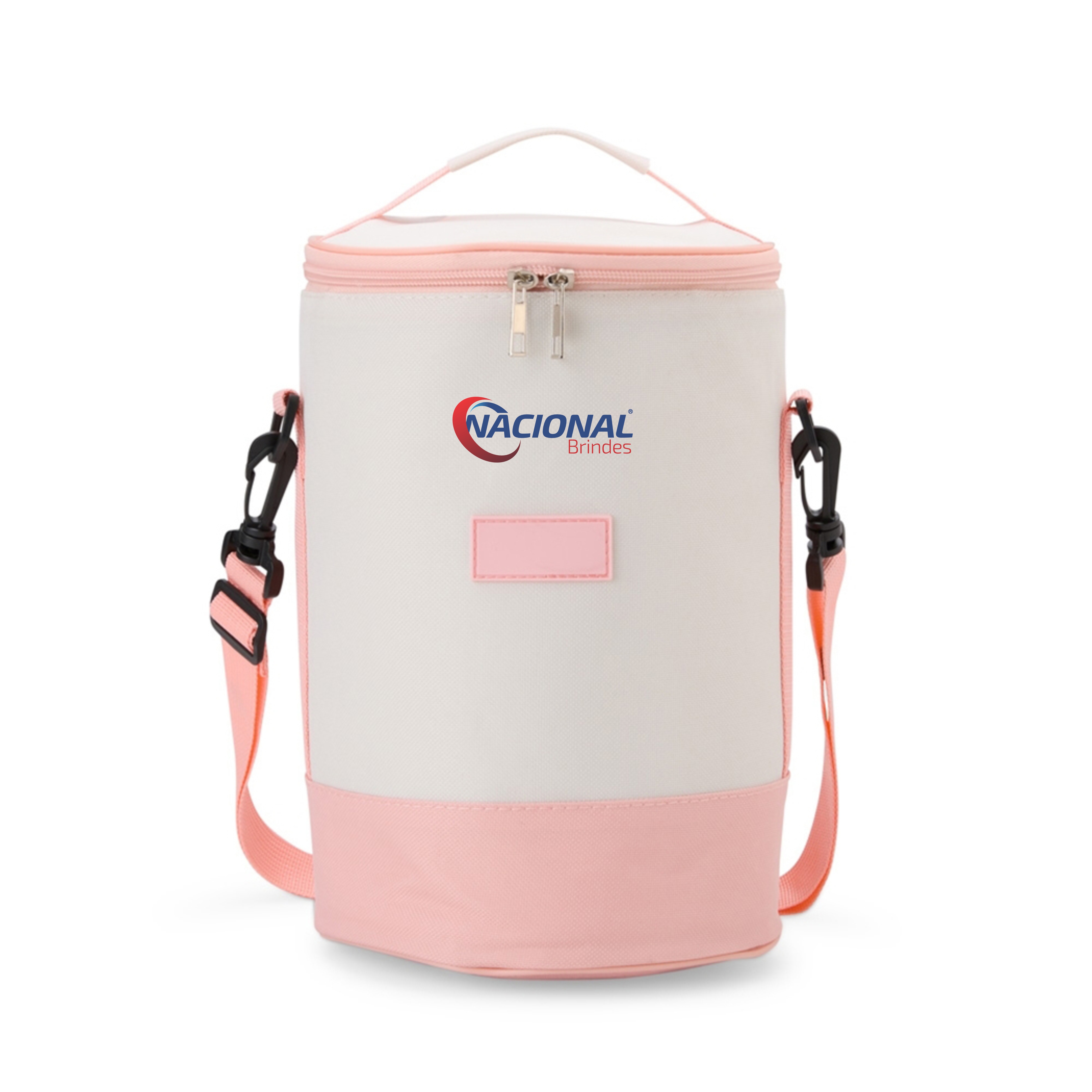 Bolsa Térmica cilíndrica com capacidade de 8 litros. Fabricado em tecido Oxford e revestimento térmico em alumínio. Possui alça de ombro removível a ajustável.