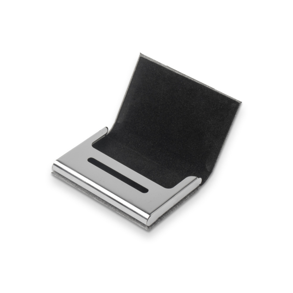 Conjunto chaveiro, caneta e porta cartão. O kit é fabricado em metal e possuem detalhes em PET Reciclado. Vem em uma caixinha preta com berço aveludado.