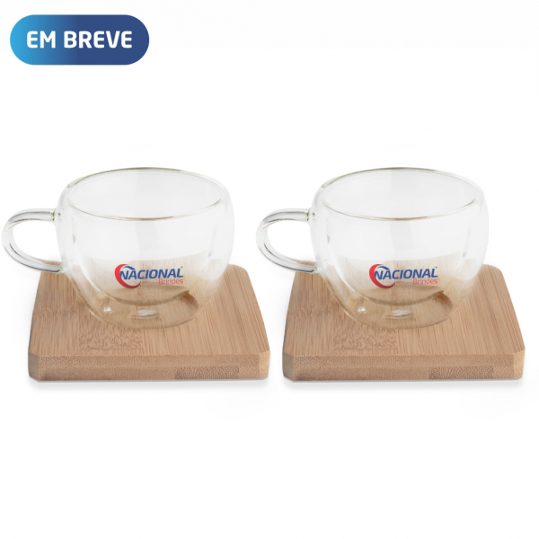 Conjunto de xicaras com capacidade de 60ml. Possui duas xícaras com parede dupla, fabricadas em borossilicato. Inclui suportes para copos feitos em bambu e caixa presenteável em kraft e tampa em acetato. Ideal para café expresso.