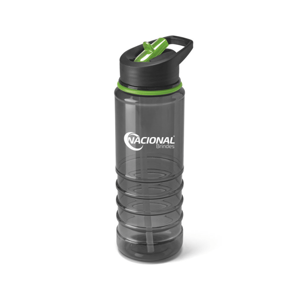 Garrafa de plástico com bico possui Capacidade de 600 ml, resistente com detalhes em relevo ao redor do corpo, tampa de vedação com rosca e válvula escamoteável de sucção interligado por canudo interno ( não precisa virar a peça para uso ) e anel de borracha decorativo.