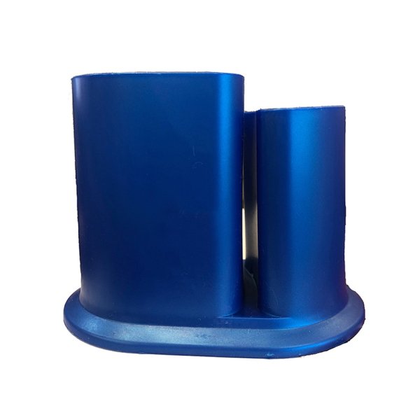 Porta Lápis metalizado, duplo com duas cavidades para cartão de visita. Possui um design arredondado. Ideal para escritórios e escolas.