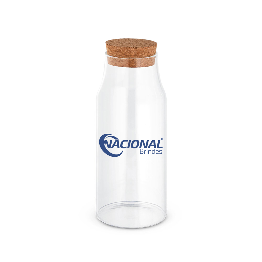 Squeeze em vidro com capacidade de 800ml. Fabricado em borosilicato, possui tampa de cortiça . Além de elegante é uma peça diferenciada.