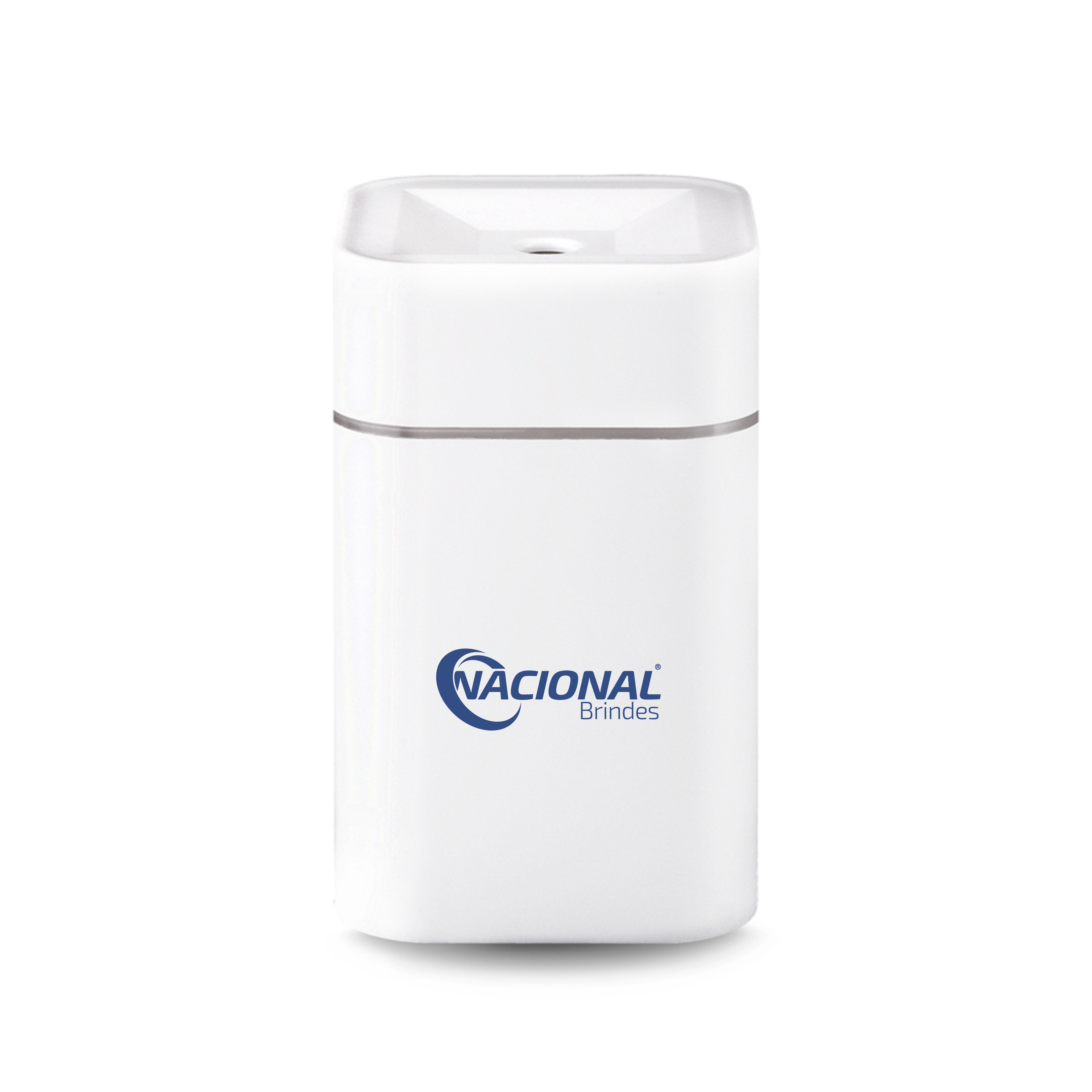 Umidificador de ar quadrado. Possui um difusor de óleo essencial à base de água via USB. Fabricado em ABS reciclável e polipropileno. Possui uma faixa que acende na parte superior da peça. Sua capacidade é de 260ml. É um produto essencial para os dias secos. Além de melhorar a qualidade do ar que respiramos, o umidificador também ajuda a prevenir crises alérgicas e respiratórias. Indicado para ambientes fechados como quartos, salas, escritórios, entre outros.